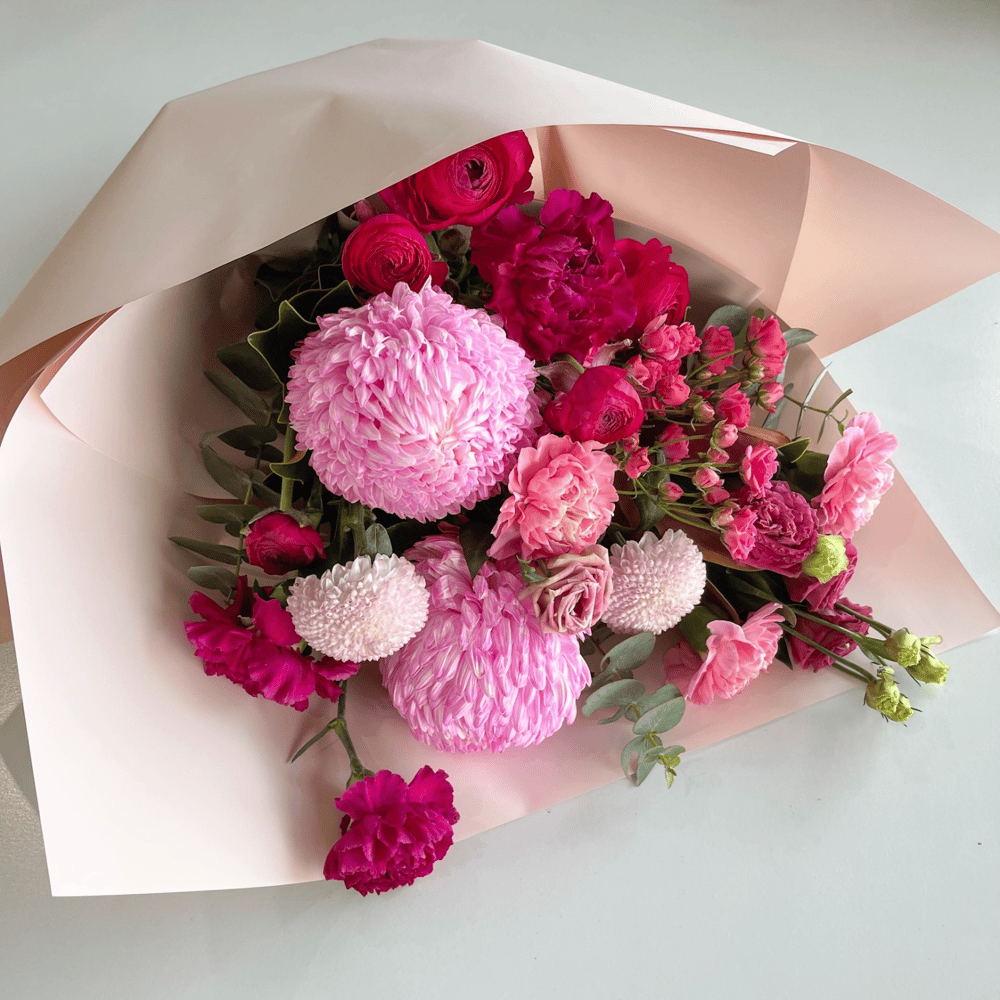 Букет, состоящий из нежных роз и роз кустовых, а также из пышных гвоздик и гвоздик кустовых, дополненных яркой хризантемой, выглядит привлекательно и элегантно. Каждый из цветов вносит свою неповторимую нотку в композицию, создавая гармоничное сочетание красок и ароматов. Букет окутан упаковкой, которая дополняет его красоту и защищает цветы во время доставки. Эта упаковка подчеркивает изысканность и стильность букета, придавая ему законченный вид. Такой букет станет прекрасным подарком для любого случая и порадует своего получателя своей красотой и свежестью.