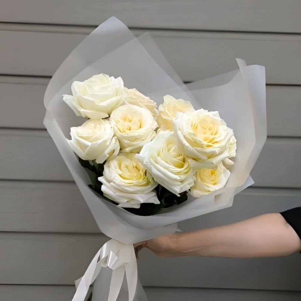 Роскошный, пушистый, монобукет восторг из кремовой розы Канделайт (11 шт.) ⠀ Состав: роза Канделайт - 11 шт., ленты, упаковка ⠀ Повод порадовать дорогих и близких людей букетом цветов может быть самым разным: день рождения, юбилей, памятная дата, встреча или свидание, выписка с новорождённым из роддома, желание поделиться пожеланиями или стремлениями через цветочный подарок, цветы в качестве благодарности или извинения.