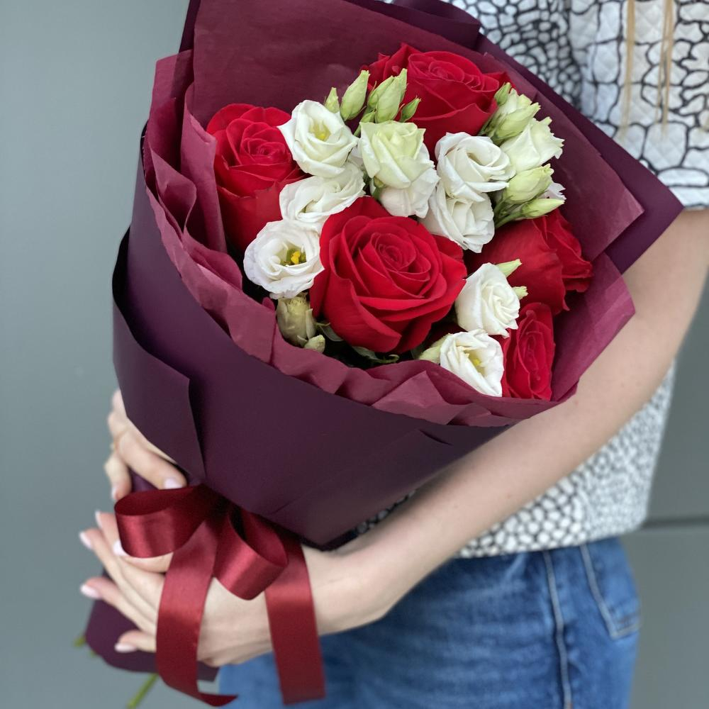 Классический красно-белый букет в стильной упаковке.