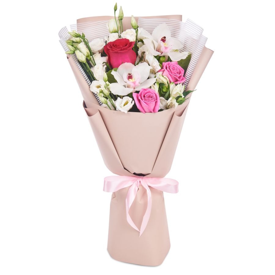 Букет "Райский остров" средний из роз и альстромерий