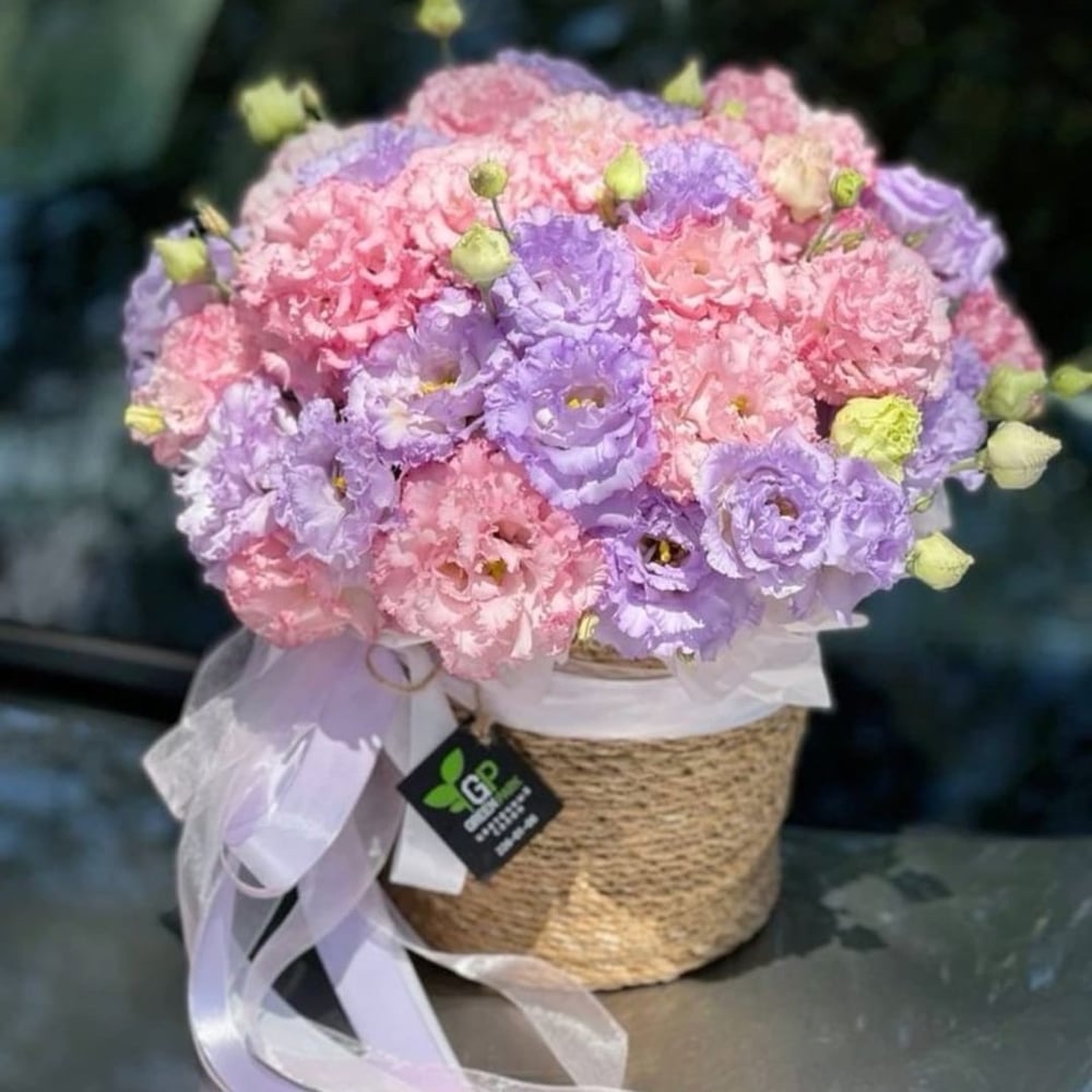 Букет из удивительно красивых цветов. Эустома символизирует нежность, изысканность, восхищение. Бутоны похожи на небольшие розы. Букет из эустомы можно подарить абсолютно к любому празднику и просто так, без повода.