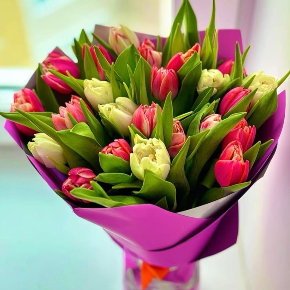Букет разноцветных тюльпанов 13