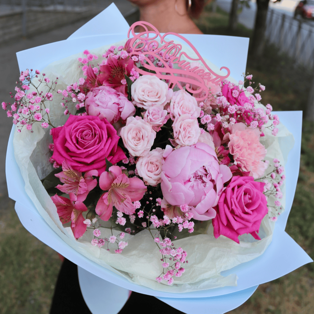 Букет Роз, Альстромерий и Пионов