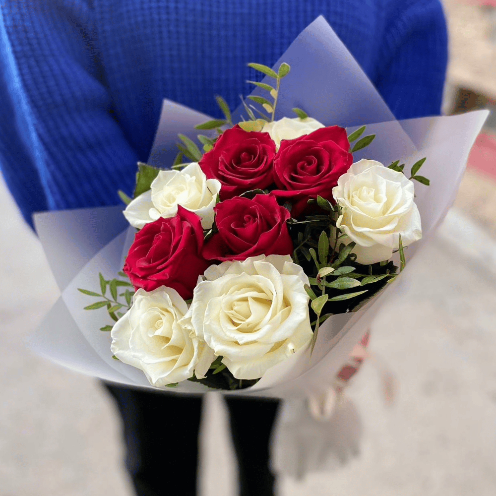 Букет из белых и красных роз Эквадор
