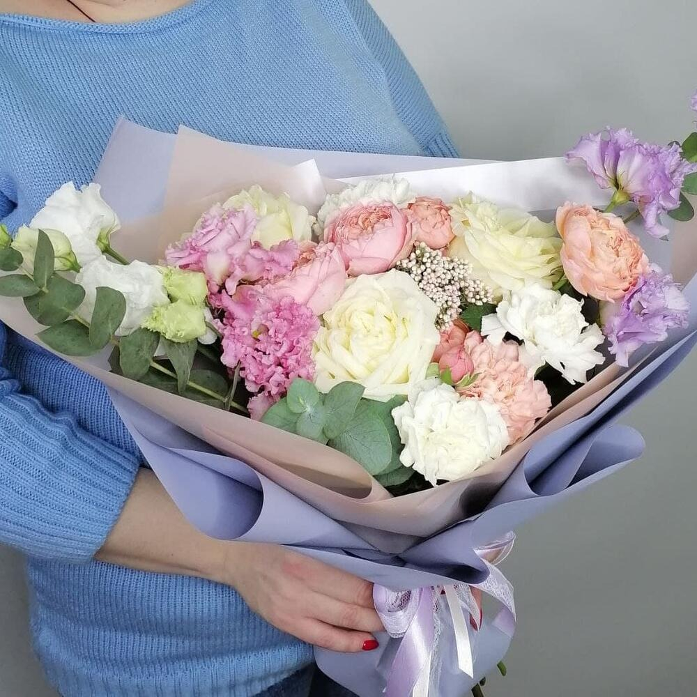 Букет Роз, Гвоздик и Эустом