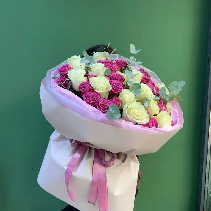 Букет: -Роза белая 15шт -Роза кустовая 9шт -эвкалипт -авторская упаковка