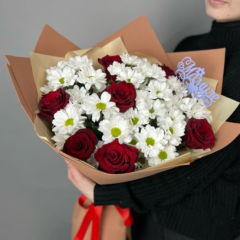 Букет роз с хризантемой