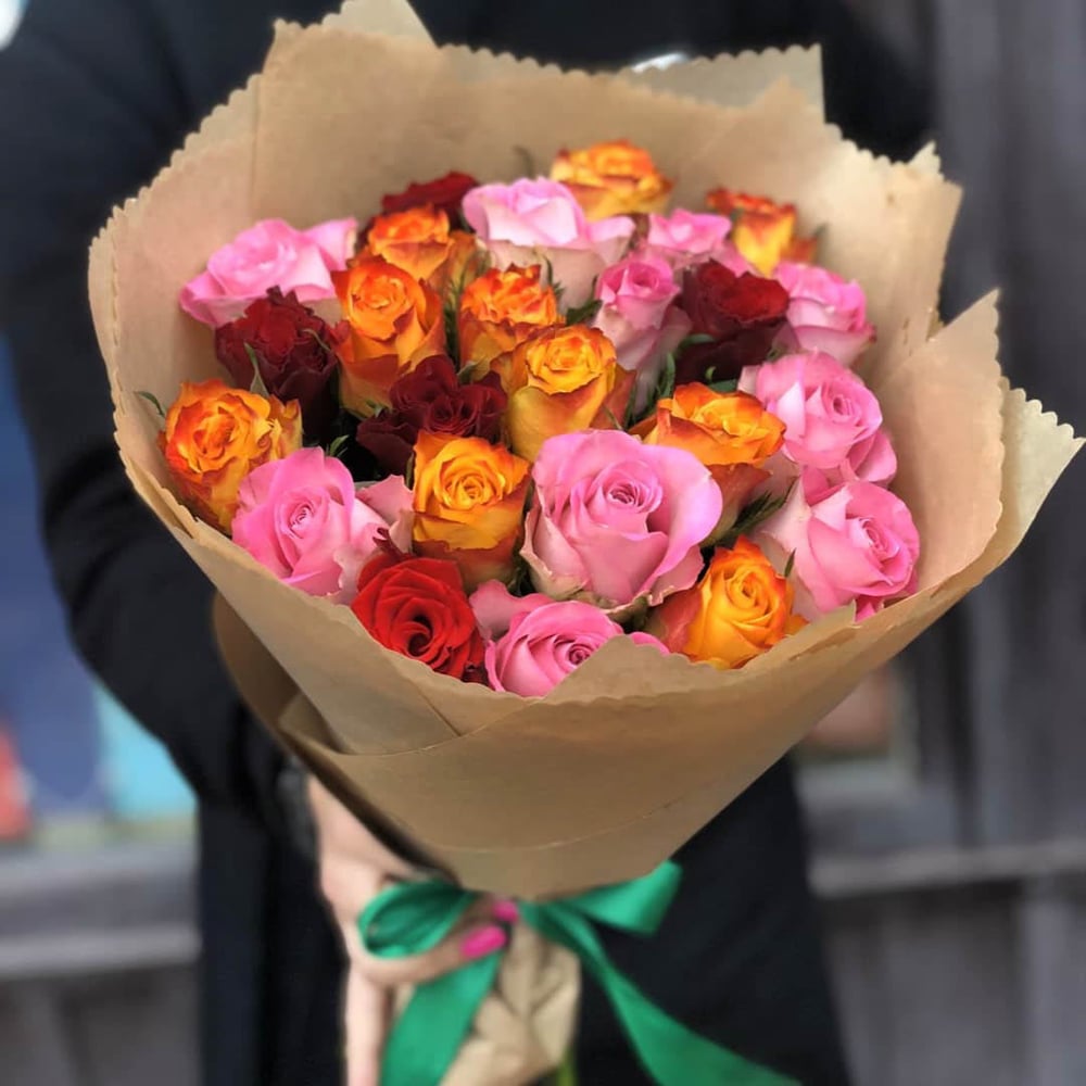 Состав: Роза Кения - 25 шт, Матовая пленка Букеты из роз — это классика, проверенная годами. Сложно найти более популярный и универсальный цветок, ведь розы используются и для свадеб, и для украшени…