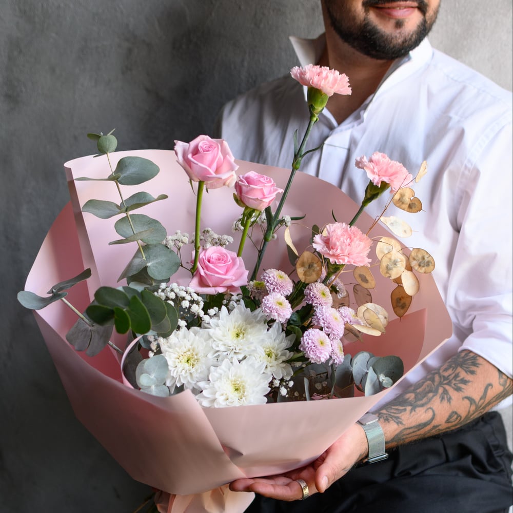 Великолепный воздушный букет из свежих цветов! Особенности: Авторское исполнение: Каждый букет уникален и создан с учетом последних тенденций флористики и визуала. Универсальность: Подходит ...