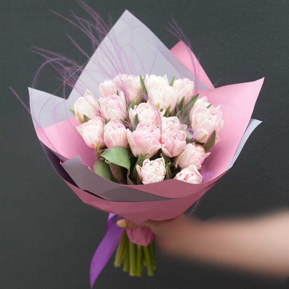 Букет собран из нежных тюльпанов и великолепных сухоцветов, создавая изящный и романтический образ. Тюльпаны символизируют весну и пробуждение, а сухоцветы добавляют нотку винтажа и загадочности. Б...