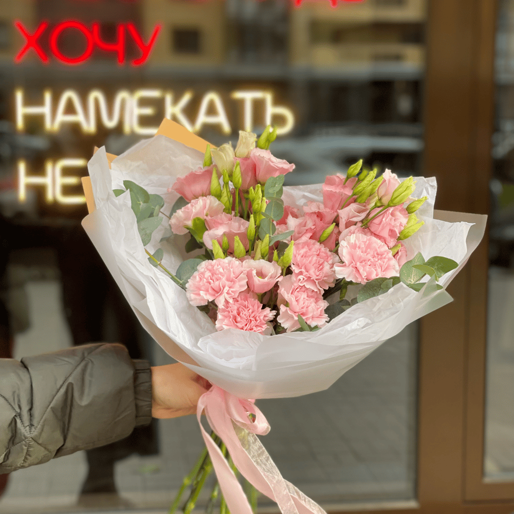 Букет с эустомой и гвоздикой Рене