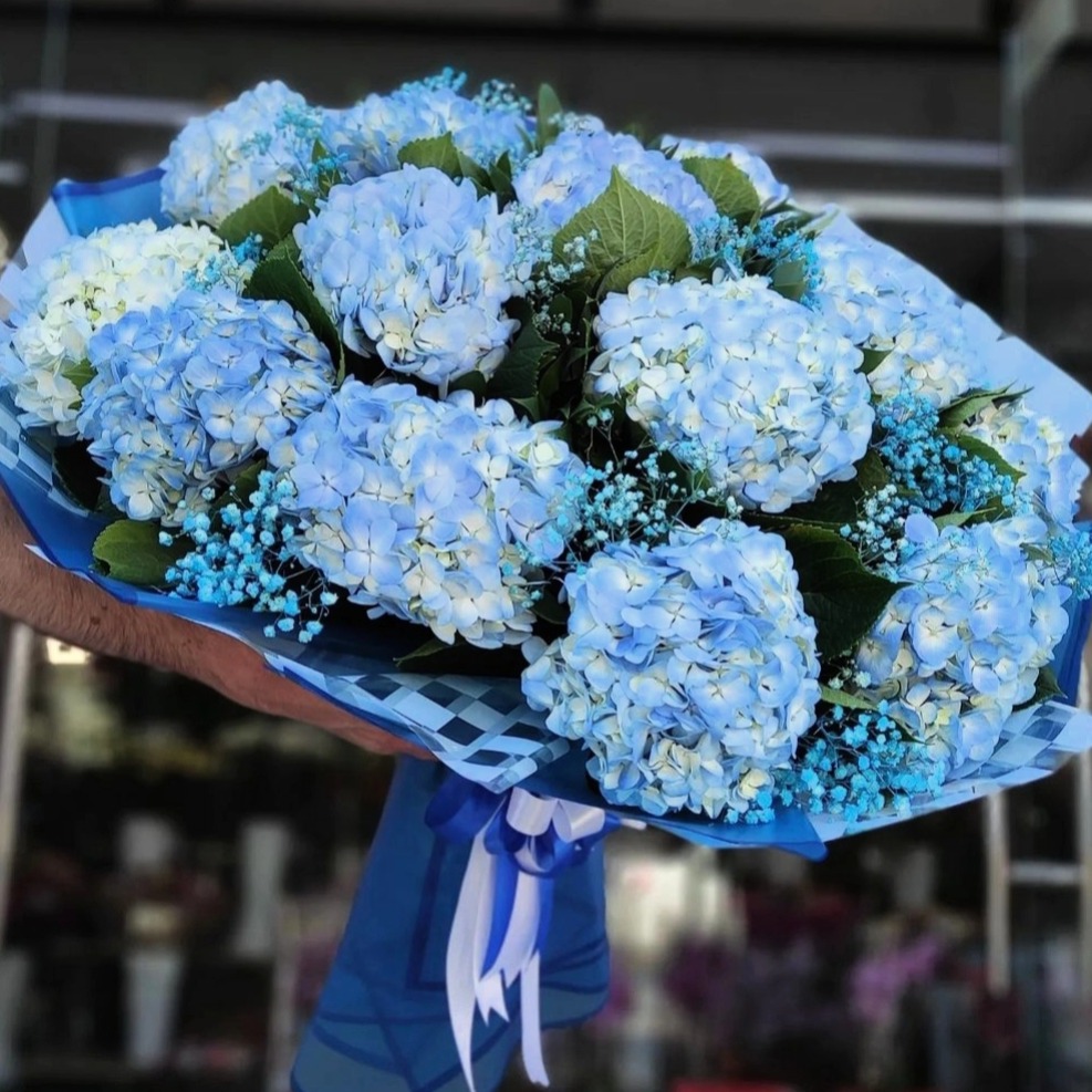 Букет с голубыми гортензиями
