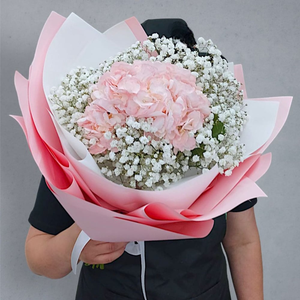 Букет из гортензии с добавлением гипсофилы