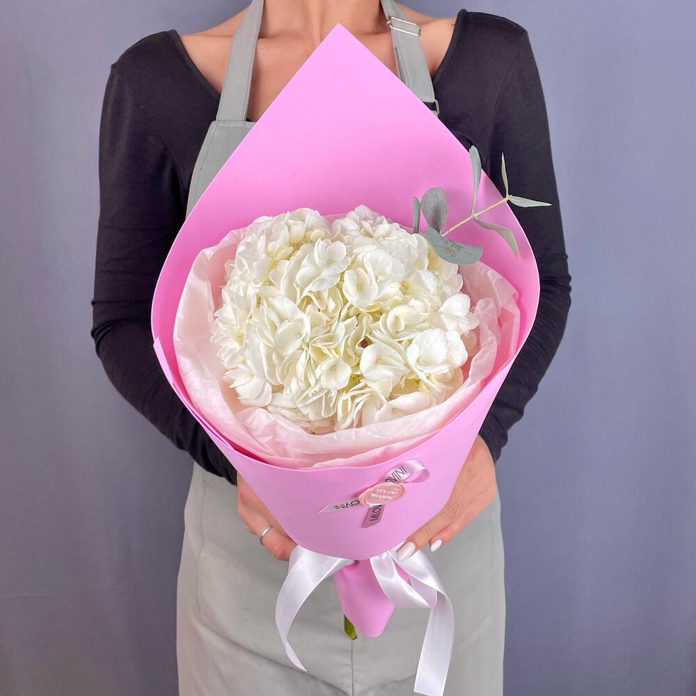 Невероятный букет с гортензией и эвкалиптом❤️ Станет классным подарком на день рождения, юбилей, свадьбу, помолвку, а также приятным сюрпризом без повода😇 Букет подойдёт в подарок для любимой женщины, мамы, бабушки, коллеги, учителя, делового партнера или же подруги • КЭШБЭК 5% с каждой покупки бонусами; • Молниеносная доставка; • Всегда свежие цветы за счет прямых поставок каждые 2 дня; • Быстрая сборка букетов от 10 минут; • Удобрение для цветов к каждому заказу; Советы по уходу: ⁃ Перед тем, как поставить цветы в холодную воду, стебли необходимо подрезать на 1 см под острым углом; ⁃ Менять воду необходимо каждые два дня; ⁃ Цветы хорошо себя чувствуют в прохладном месте, вдали от отопительных приборов, сквозняков и солнечных лучей; ⁃ Сухие и увядающие листья и бутоны необходимо удалять, так как они поглащают питательные вещества; ⁃ Композицию в коробке/корзине/лукошке так же необходимо поливать раз в два дня, в центр достаточно подлить 1/2 стакана прохладной воды🙏🏻 Будем рады принять Ваш заказ и подарить Вам незабываемые эмоции🥰