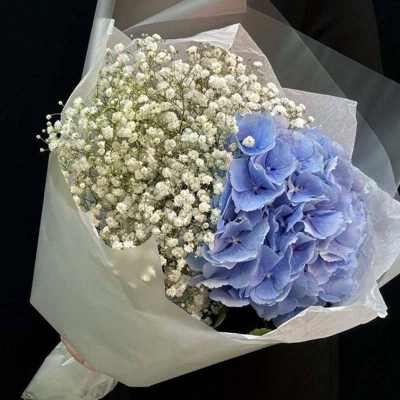 Букет с гортензией и гипсофилой