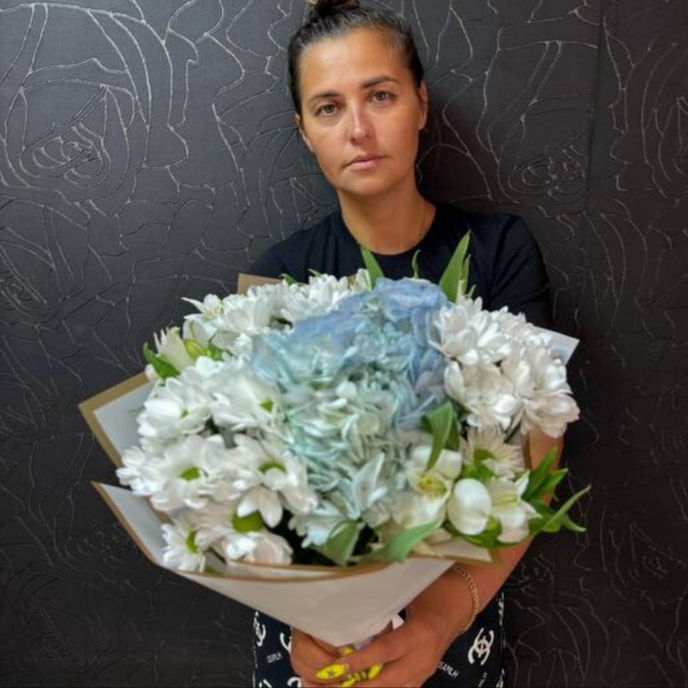 Этот изысканный букет состоит из нежных альстромерий, пышных гортензий, ярких хризантем и декоративной зелени фисташки. Он упакован в стильную дизайнерскую упаковку и украшен атласной лентой, что д...