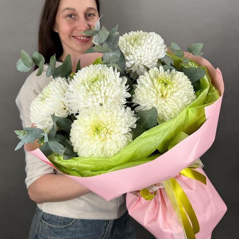 Букет с хризантемой и эвкалиптом