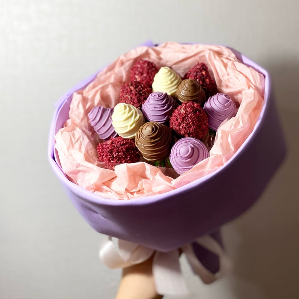 Отборная клубника, молочный и белый шоколад, сублимированная малина