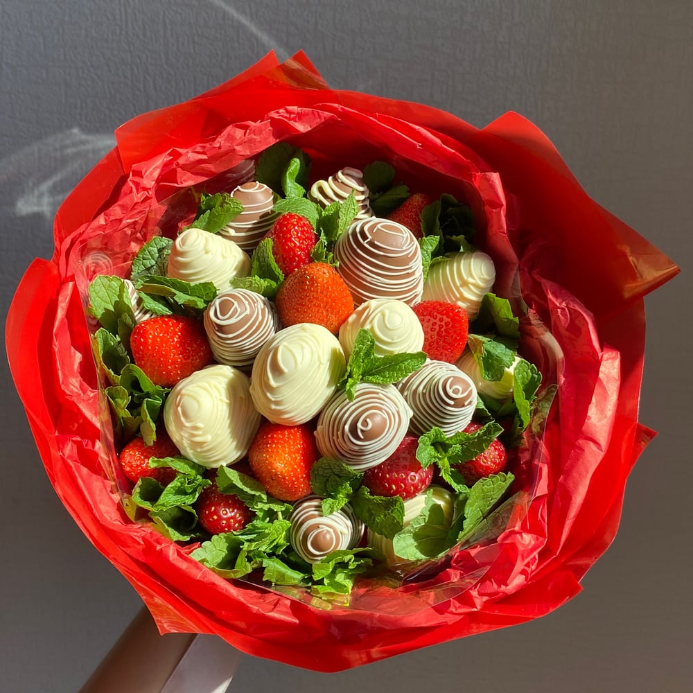 Мята, клубника в шоколаде, бельгийский шоколад белый и молочный
