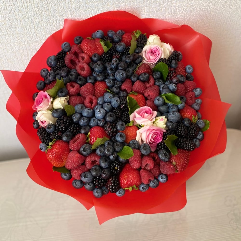 Букет с клубникой,голубикой, ежевикой