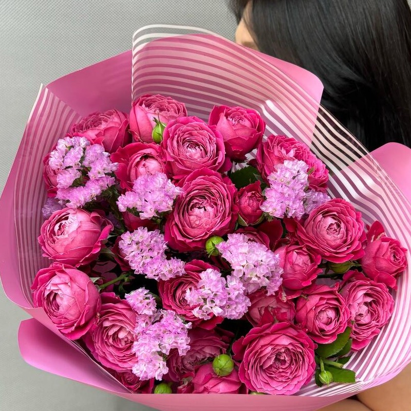 Букет с пионовидными розами и статицей