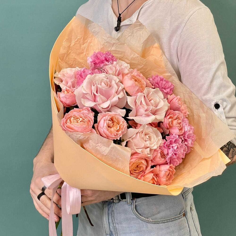 Букет с розами и диантусам Apricot idea