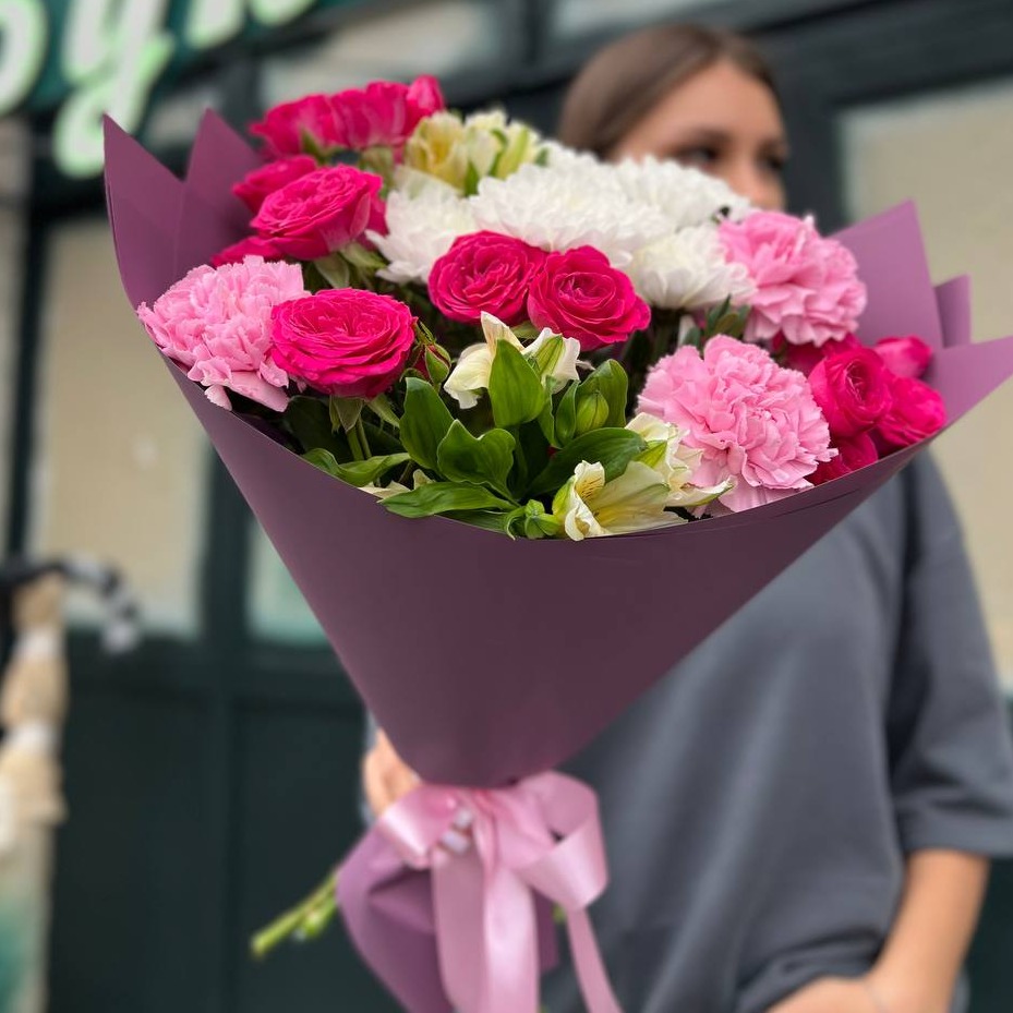 Волшебный букет интригует своей красотой. Флористы собрали его из самых свежих цветов, тщательно продумав состав. Теперь он готов удивить красотой своего получателя. Букет упакован в декоративную упаковку и украшен лентой. Также в комплект входит инструкция походу за букетом и средство для стойкости цветов.В зимнее время года букет упаковывается в специальный утеплитель.