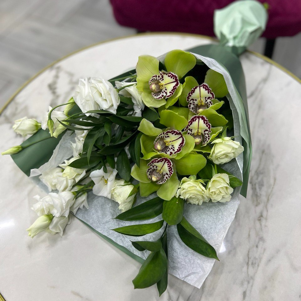 Букет с зелеными орхидеями