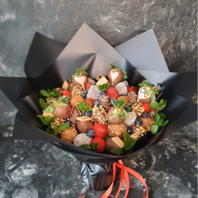 Состав: Натуральный продукт! Срок хранения 24 часа при температуре от +4 до +6 градусов Описание товара: ягоды - клубника, голубика, мята шоколад - молочный топпинг - кокосовая стружка, печенье, воздушный рис, вафельная крошка ПОДАРОК - открытка с вашими пожеланиями!?? Обращаем Ваше внимание, что оттенок бумаги может немного отличаться Бережно упакуем его в прозрачную упаковку для безопасности продукта!
