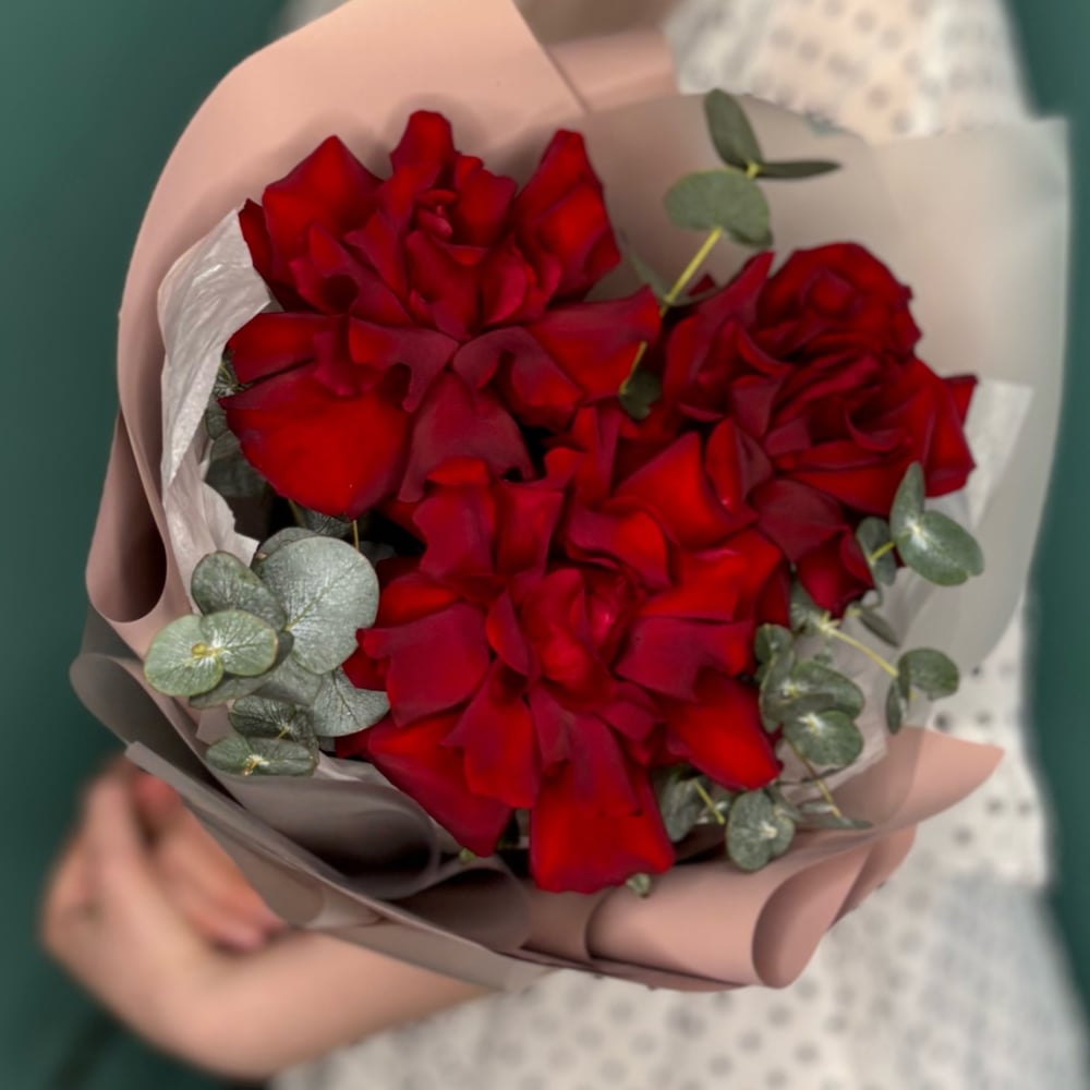 3 французские розы с эвкалиптом