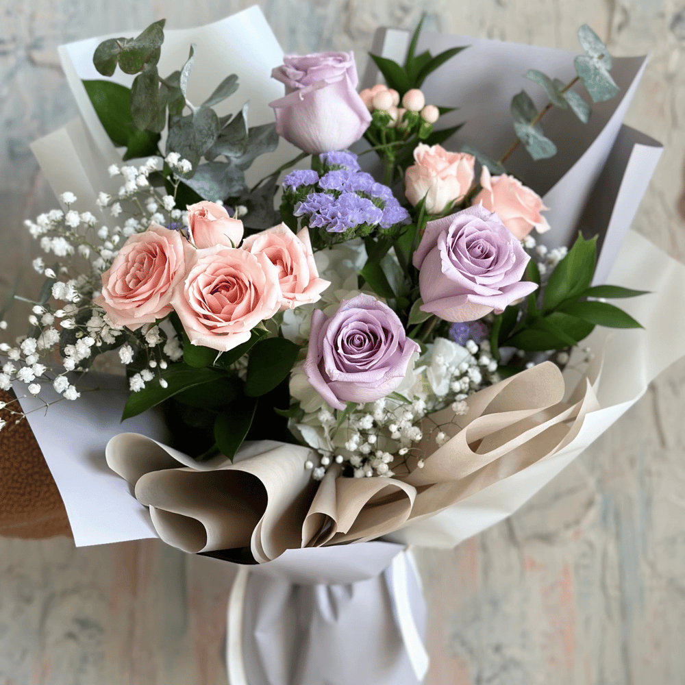 Букет, состоящий из красивых и нежных цветов, станет превосходным подарком для любого случая. В его состав входят прекрасные розы, розы кустовые, гипсофила, статица, рускус и гортензия (гидрангия),...