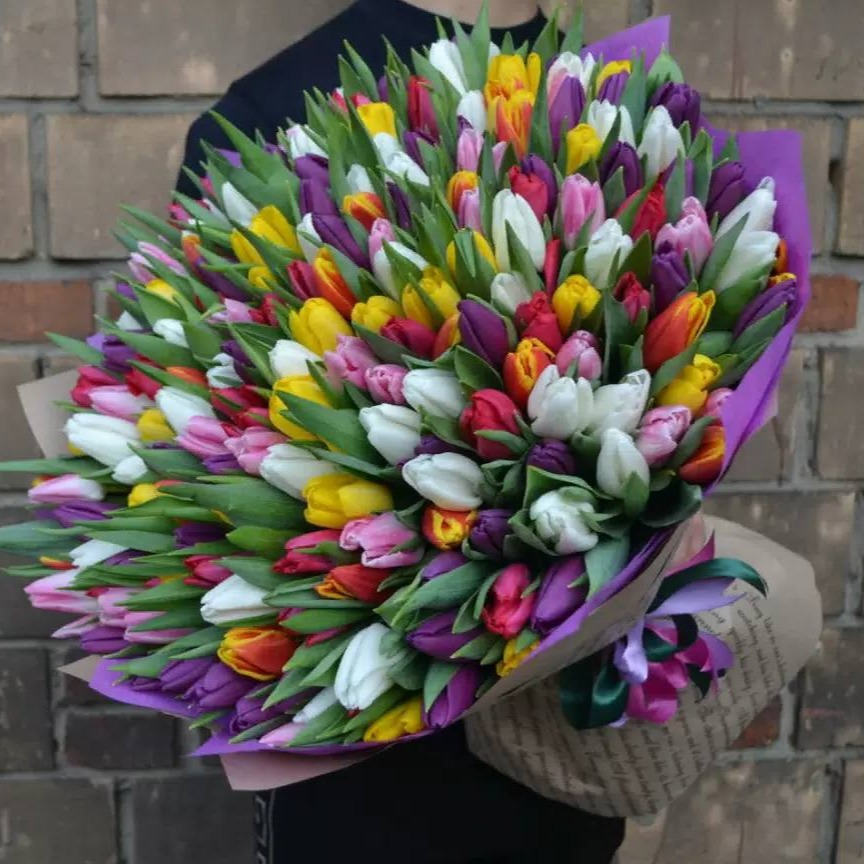 Букет цветов 101 тюльпан
