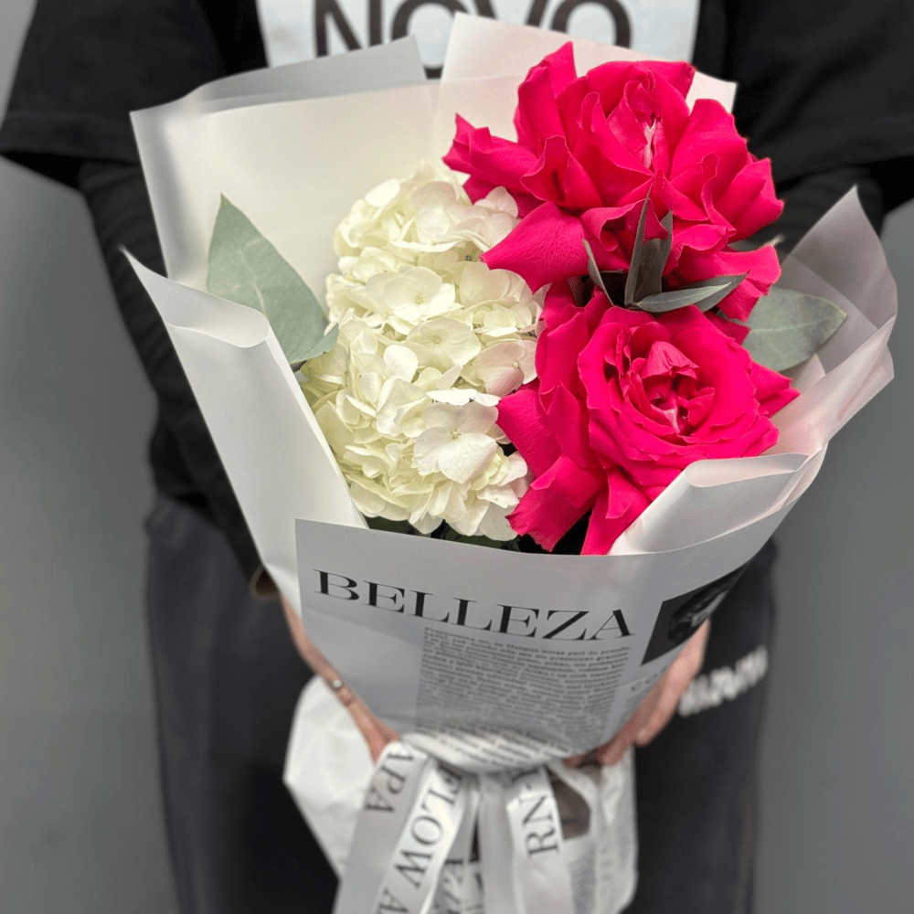 Букет цветов Французский комплимент из роз и гортензий