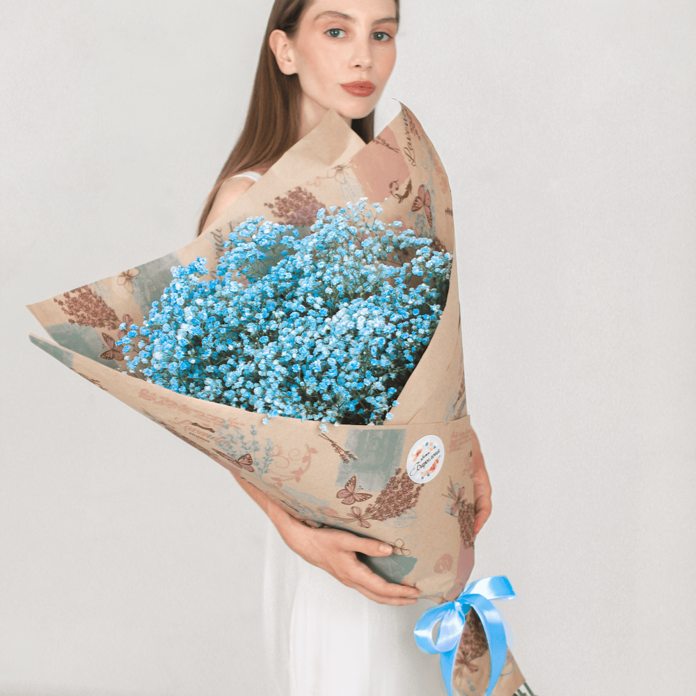 Состав: Гипсофила плантации Esmeralda-7 шт., Высота:70см., Упаковка-на выбор, Лента-атласная. Описание: Букет с гипсофилами цвета морской волны, искрится как лазурь неба в ясный день и радует своими красками близких вам людей. Превосходная стойкость. Каждое соцветие имеет большое количество веточек. Высота 70 см. Срок годности не ограничен.