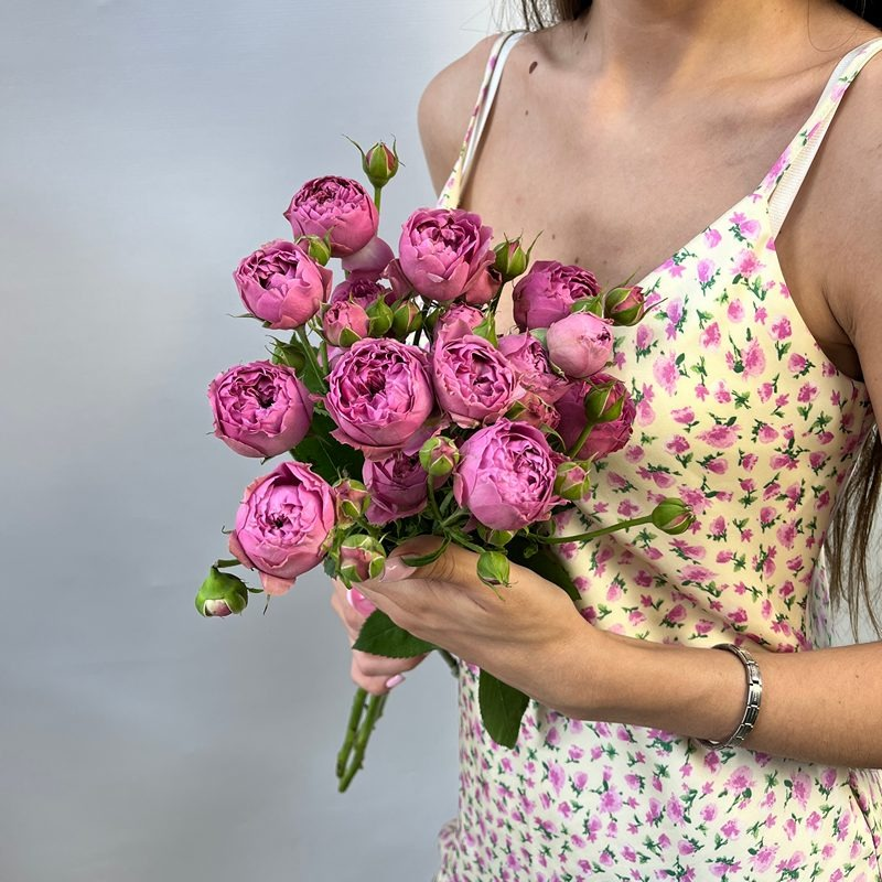 Состав букета: Кустовая роза пионовидная Блю (фиолетово-розовая) - 5 шт;