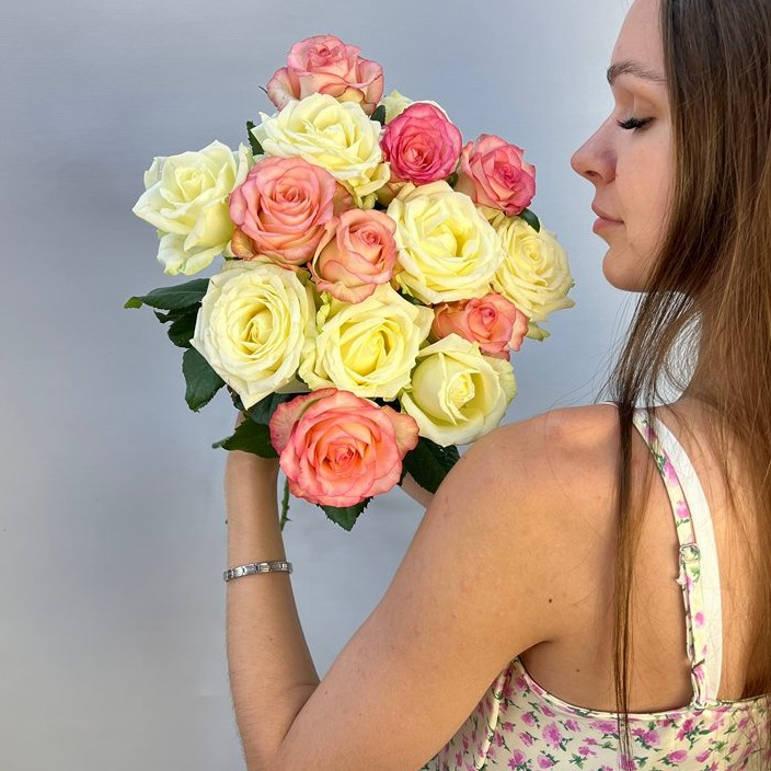 Букет цветов н21 - Бело-розовые розы