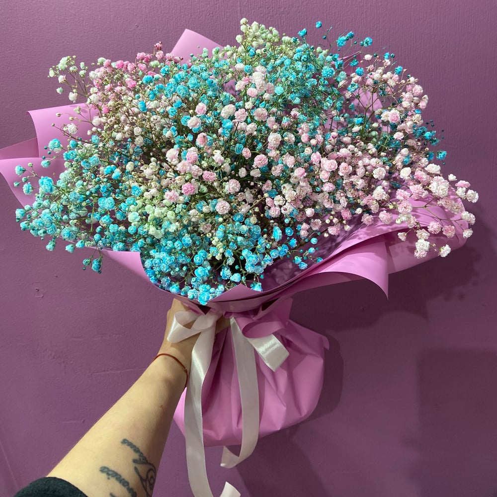 Радужный букет из разноцветной гипсофилы.