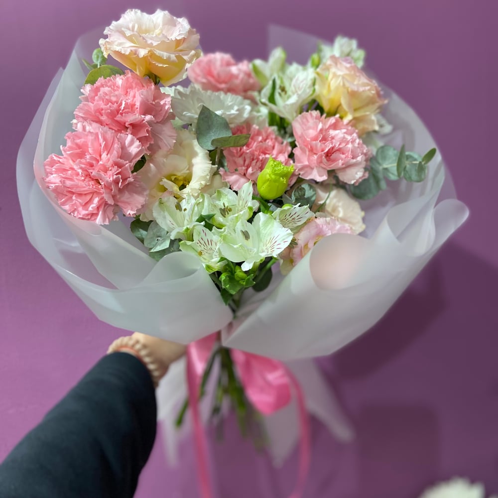 Букет цветов Той самой из эустом и альстромерий