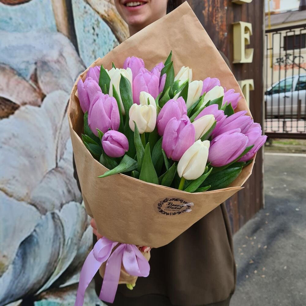 Вас приветствует цветочный Салон Бьюти букет. Мы создали подборку стильных, красивых букетов из тюльпанов премиум класса. Обращаем ваше внимание, что расположение цветов, цветовые оттенки могут отличаться от заявленного на фото, но мы всегда сохраняем стилистику заявленного букета, собираем букеты стильно и со вкусом. Приобретая у нас букет, вы гарантировано получите востор получателя от букета!