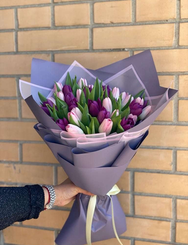 В древние времена сиреневые тюльпаны считались признаком знатного рода, поэтому вручались исключительное вельможам, царям, или людям с высоким статусом, розовые же можно дарить на первых порах отношений, чтобы рассказать о своих чувствах. Отличное сочетание, указывающее на важность данного человека в вашей жизни