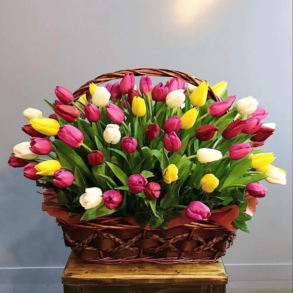 Букет тюльпанов в корзине