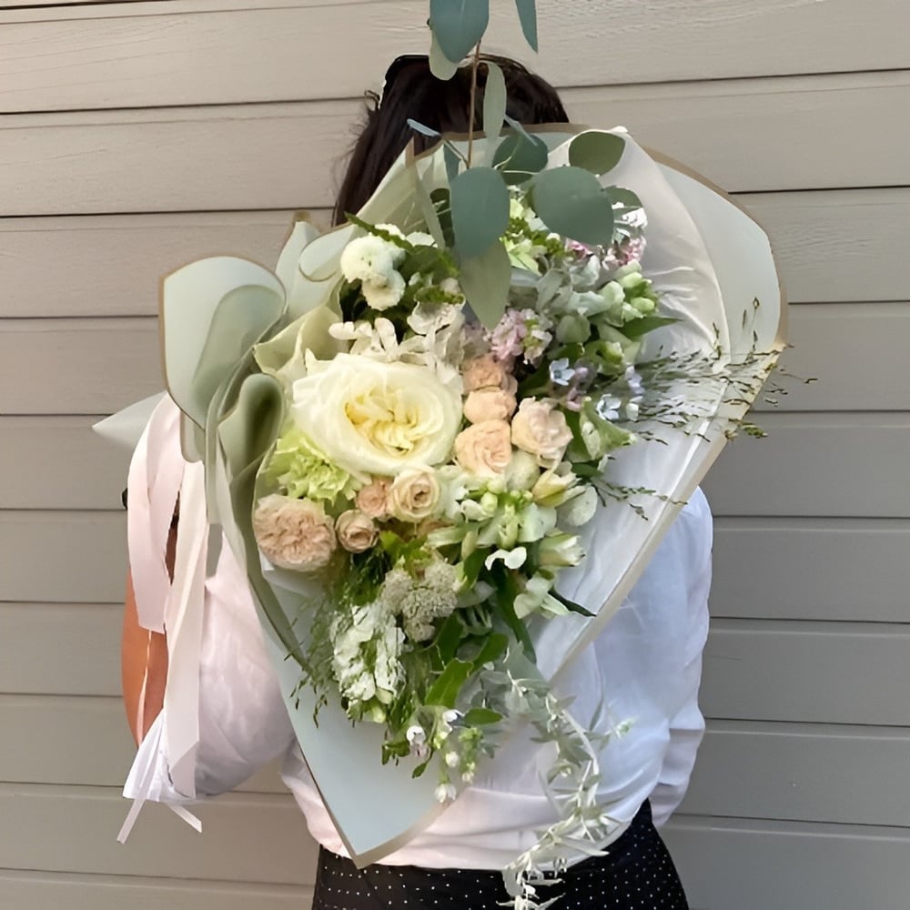 От такого роскошного цветочного презента, восторгу и радости у вашего близкого сердцу человека не будет предела. Роскошного оттенка топленного молока разы Канделайт, пионовидные розы, львиный зев, альстромерия и хризантемы, так напоминают весенний прованс Франции... ⠀ Каждый авторский букет созданный мастерами Центра Флористики Красноярск уникален и создаётся по индивидуальным пожеланиям. Мы оставляем за собой авторское право определять итоговый состав букета исходя из сезонности цветов, но гарантируем, что букет останется уникальным, стильным и красивым. ⠀ Состав: роза Канделайт - 1 шт., роза куст пионовидная саммероуз - 3 шт., альстромерия - 3 шт., эвкалипт - 1 шт., астранция - 2 шт.. хризантема кустовая Ньютон - 2 шт., диантус - 2 шт., львинный зев - 3 шт., оксипеталлум - 3 шт., маттиола - 2 шт., упаковка, ленты