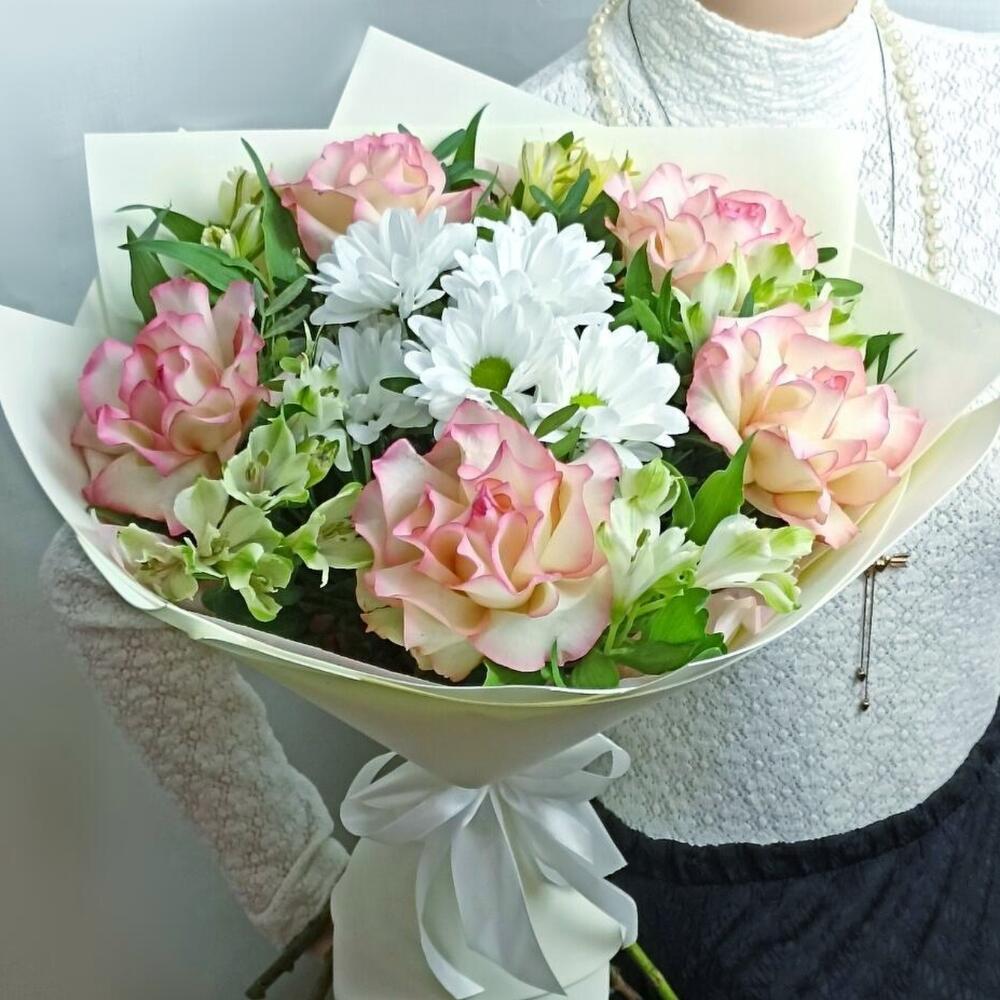 Букет "Вивьен" из роз и альстромерий
