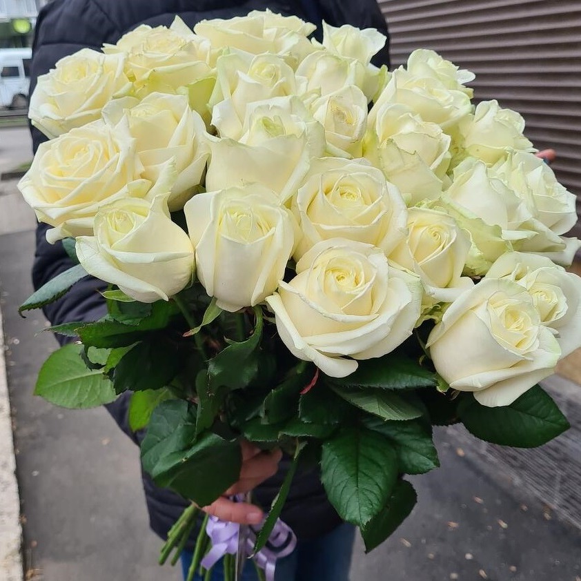 Букет высоких белых роз 90 см
