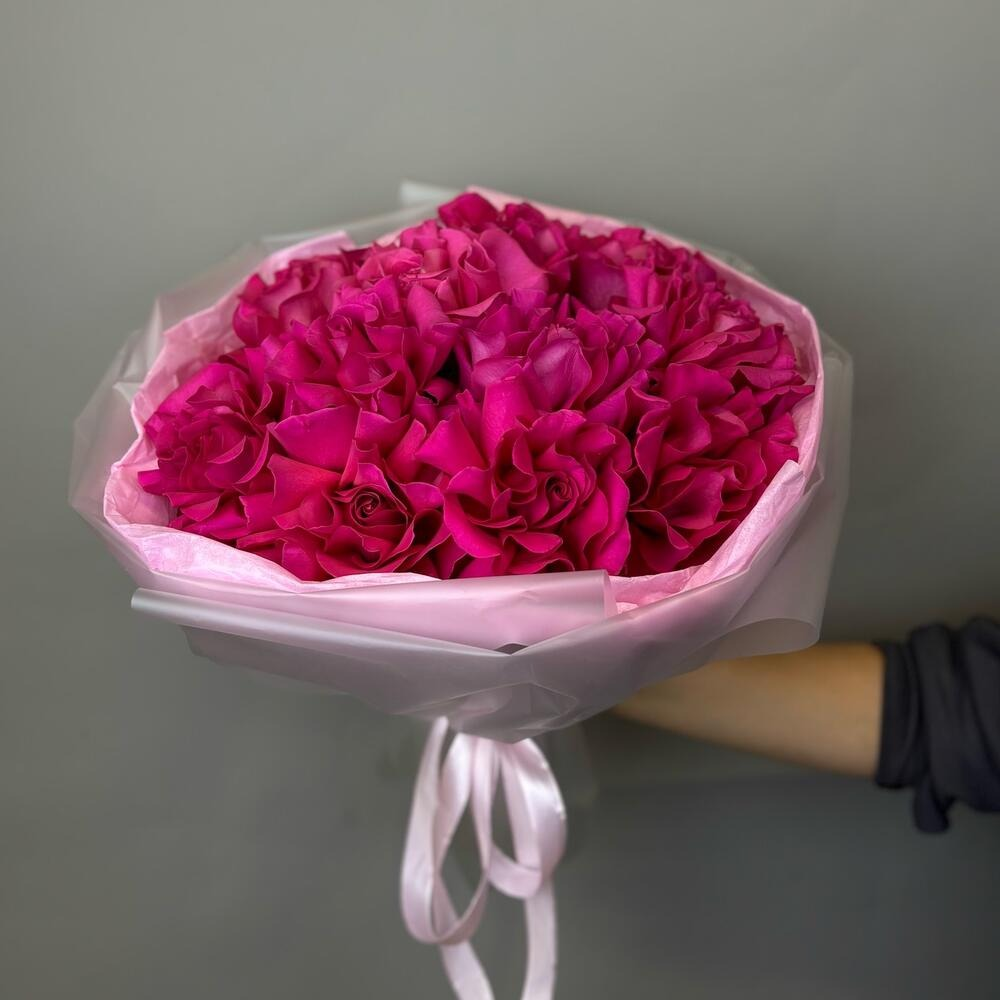 Букет из розовых роз может символизировать светлые чувства, искренность, лёгкость и романтическое настроение. В зависимости от оттенка роз, букет может иметь разное значение: Светло-розовые и малиновые тона указывают на трогательные чувства, восхищение и трепет перед избранницей. Классический «цвет Барби» символизирует успех и поздравление. Тёмно-розовые бутоны олицетворяют благодарность и признательность. Вне зависимости от тона букета подчёркивает изящество и женственность получательницы. Она говорит о радости и счастье. В подарок к каждому заказу мы дарим кризал(средство для продления жизни цветка) и рекомендации по уходу.