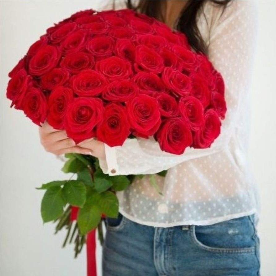 Шикарный букет из красных роз станет отличным подарком на день рождения, юбилей или иное торжество.