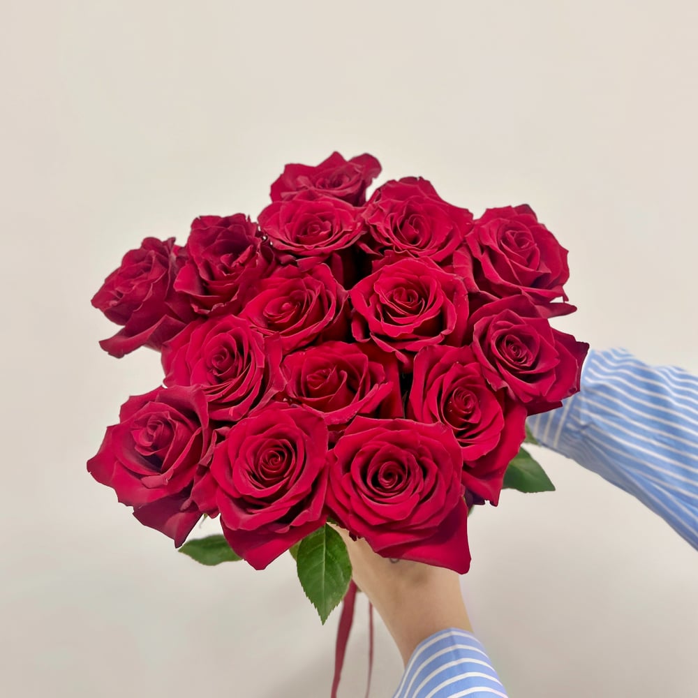 Букет живых цветов из 15 красных роз под