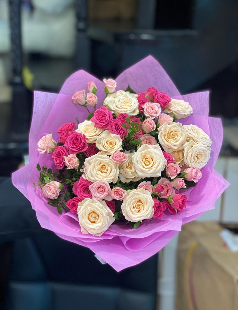 Букет из кустовых розочек будет долго радовать получателя