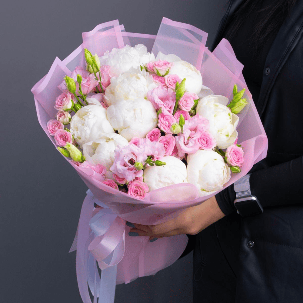 Букет «Буль» из пионов и роз