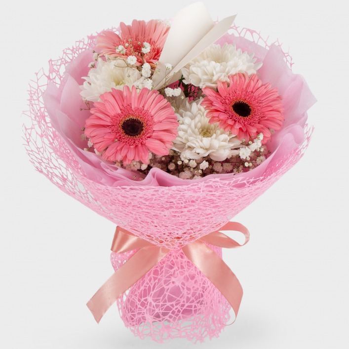 Букет «Бумажный самолетик» из гербер и хризантем